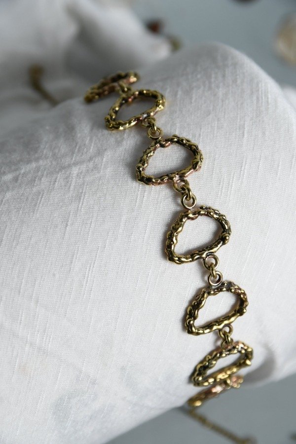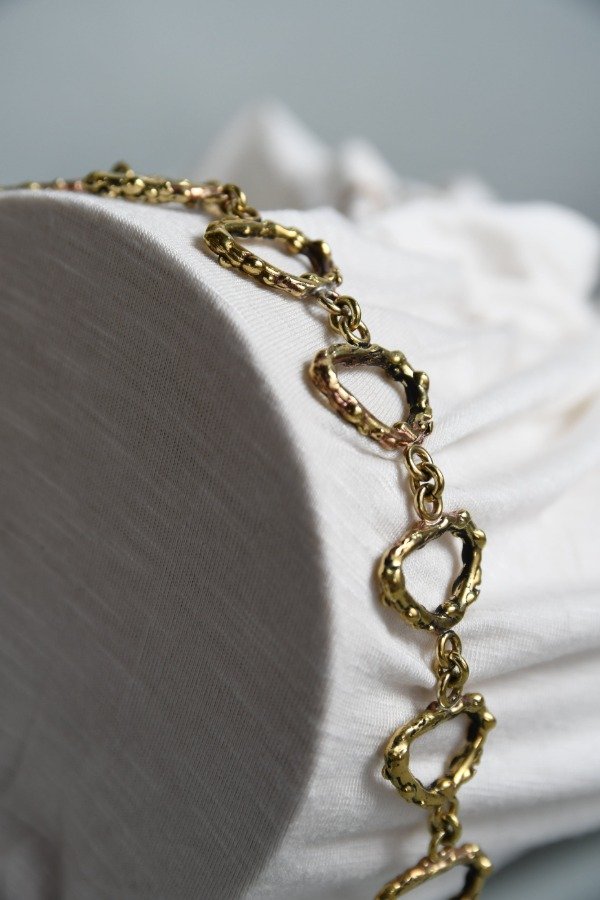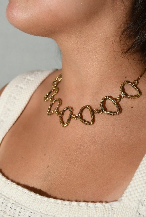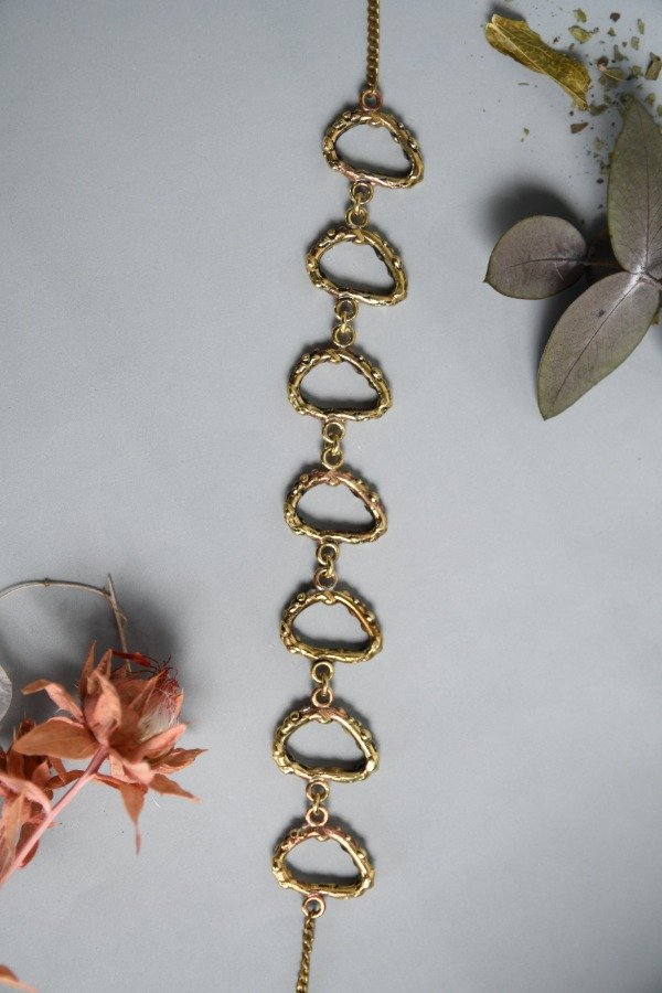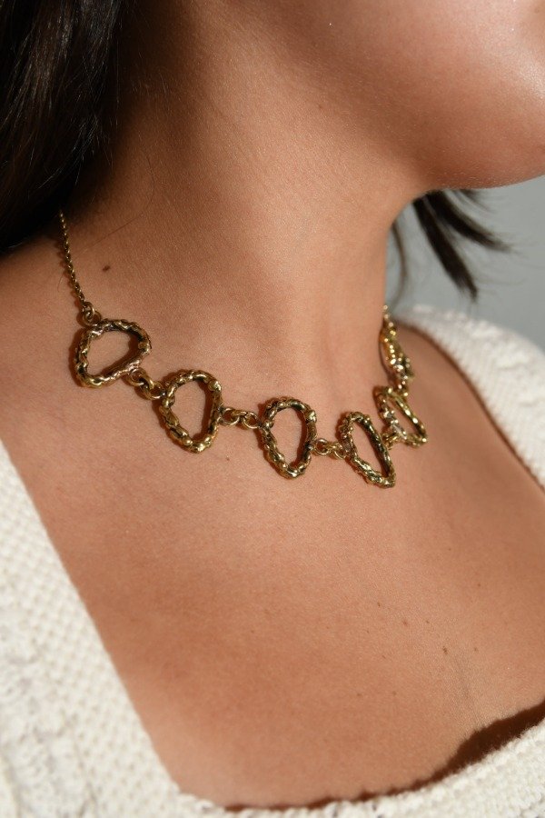 Gargantilla de bronce con detalles tallados a mano en cera. Cierre mosquetón. Cada pieza es única y hecha a mano en Buenos Aires, Argentina. Dependiendo su disponibilidad puede demorar hasta 10 o 15 días hábiles. Se puede realiza en alpaca o bronce.