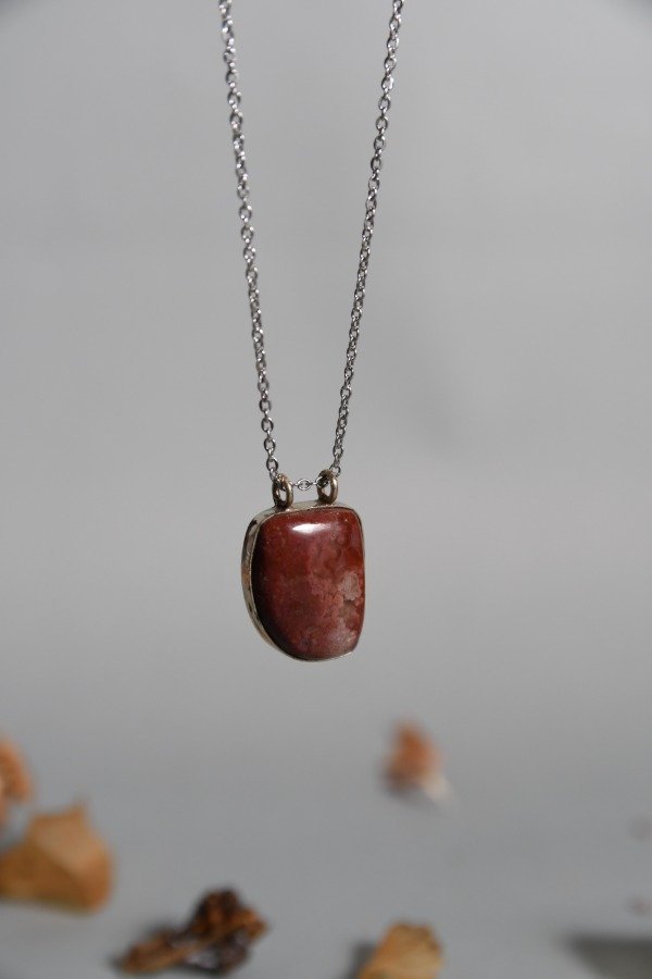Colgante engarzado a mano en alpaca con cadena de 50 cm de largo hipoalergénica. Piedra ágata crazylace